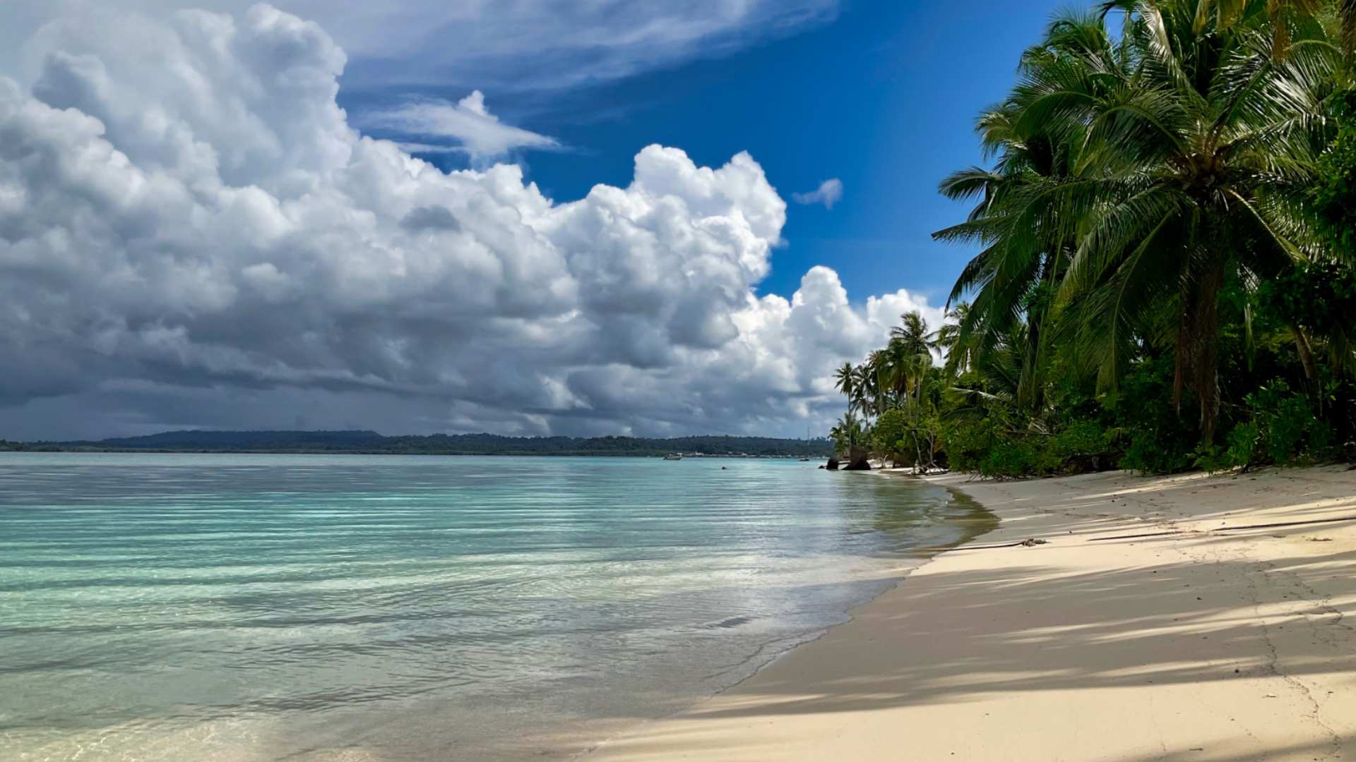 The interior is hilly (the highest point is 285 m altitude), covered by lush rainforest, almost uninhabited. The coast is wild, with long narrow beaches with leaning coconut palms (a typical tropical paradise card-image).