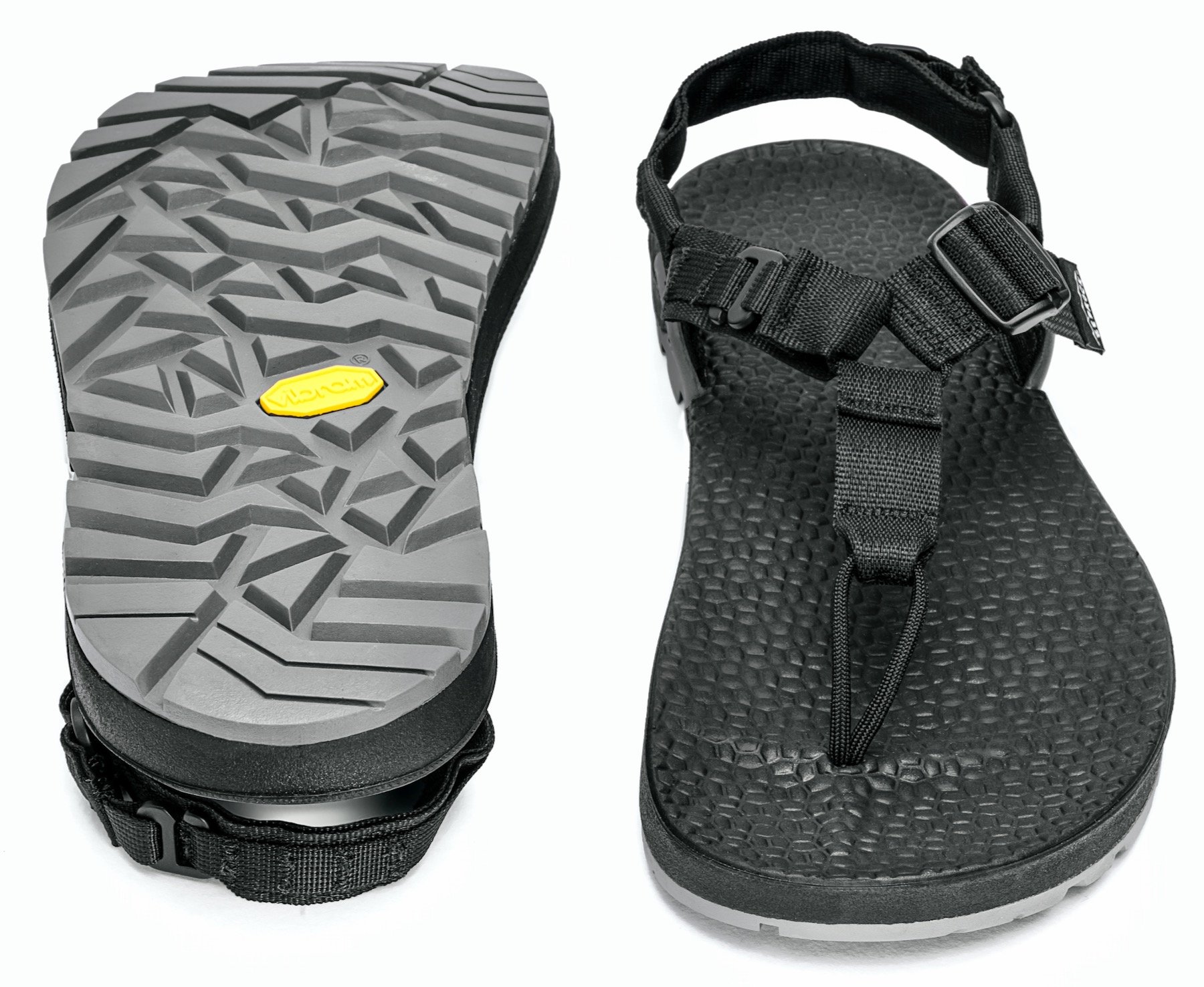 Bedrock Cairn 3D Pro is designed with four straps- one strap for your heel, and three straps on the front side- two of them to the left and to the right, and one of them- between your toe fingers. But it ends with a comfortable sling loop, so your toes can feel well.